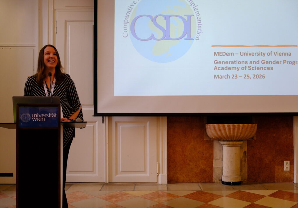 From 23 to 25 March, the CSDI Workshop 2026 took place at the “Aula am Campus” of the University of Vienna, hosted by MEDem (Monitoring Electoral Democracy) and the GGP (Generations & Gender Programme). Bringing together researchers and practitioners in comparative survey design and implementation (CSDI), the workshop provided a forum for exchanging innovative methods and tools to advance comparative survey research across countries and disciplines.